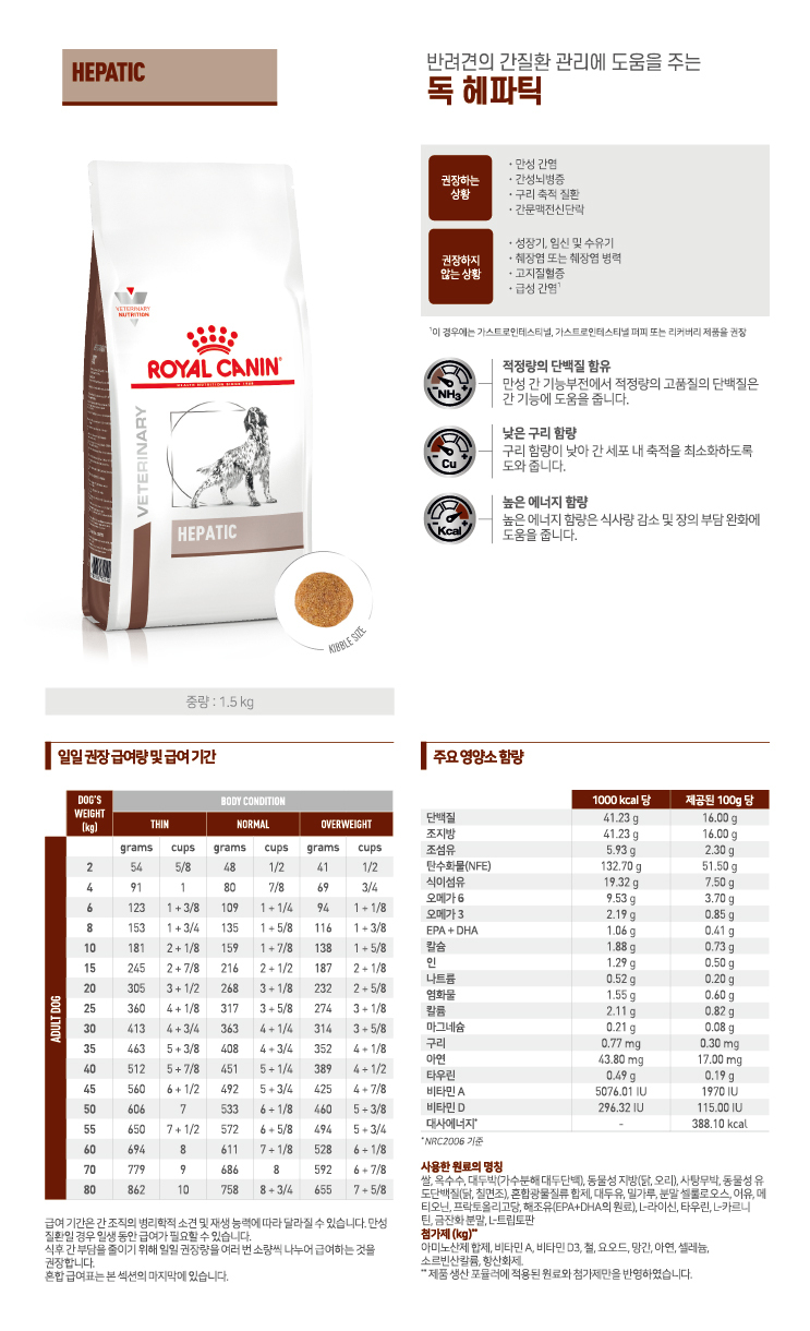 > 로얄캐닌 독 헤파틱 1.5kg 처방식